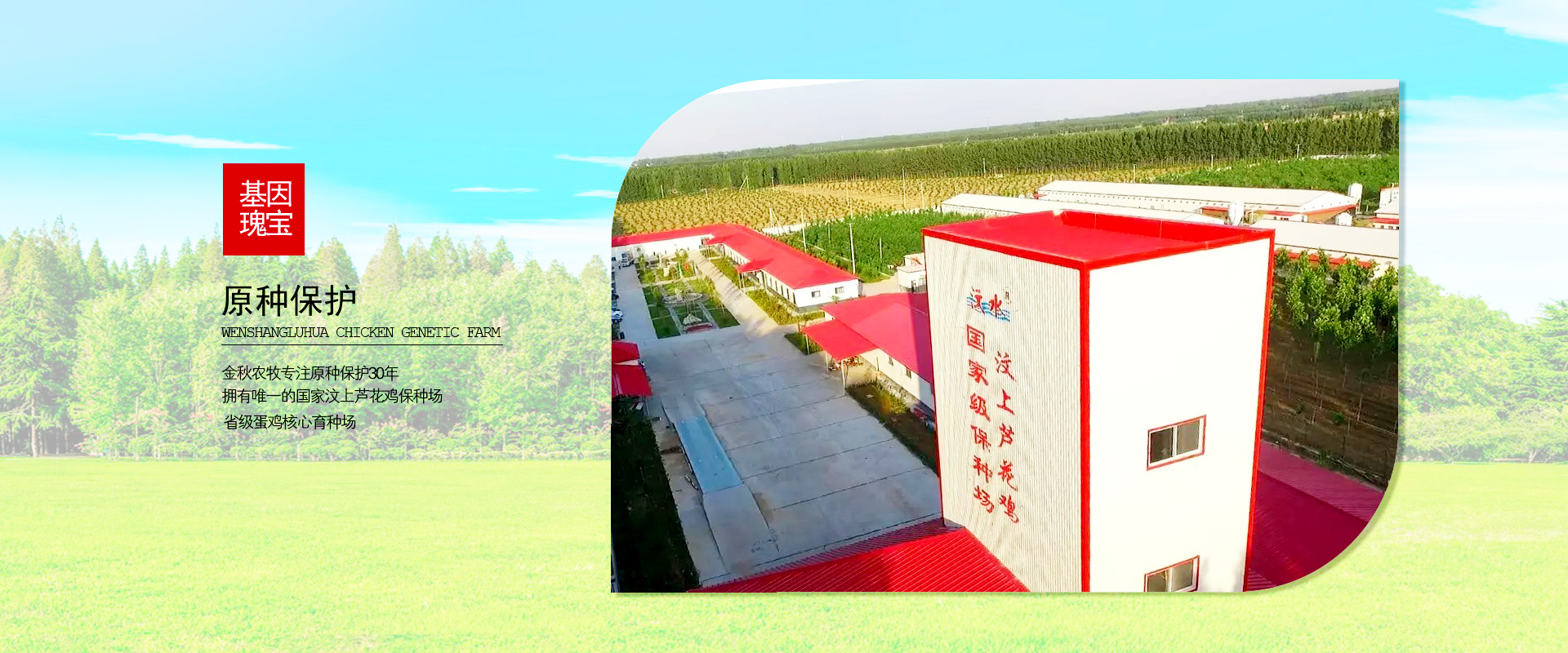 山东金秋农牧科技股份有限公司是一家专业从事国家地理标志农产品汶上芦花鸡的保种、提纯、种鸡扩繁、种苗销售以及新品系研发的省级农业产业化重点龙头企业和高新技术企业,同时还从事林下放养、饲料加工、苗木种植和芦花鸡产品深加工。2015年,公司被认定为国家级汶上芦花鸡保种场。